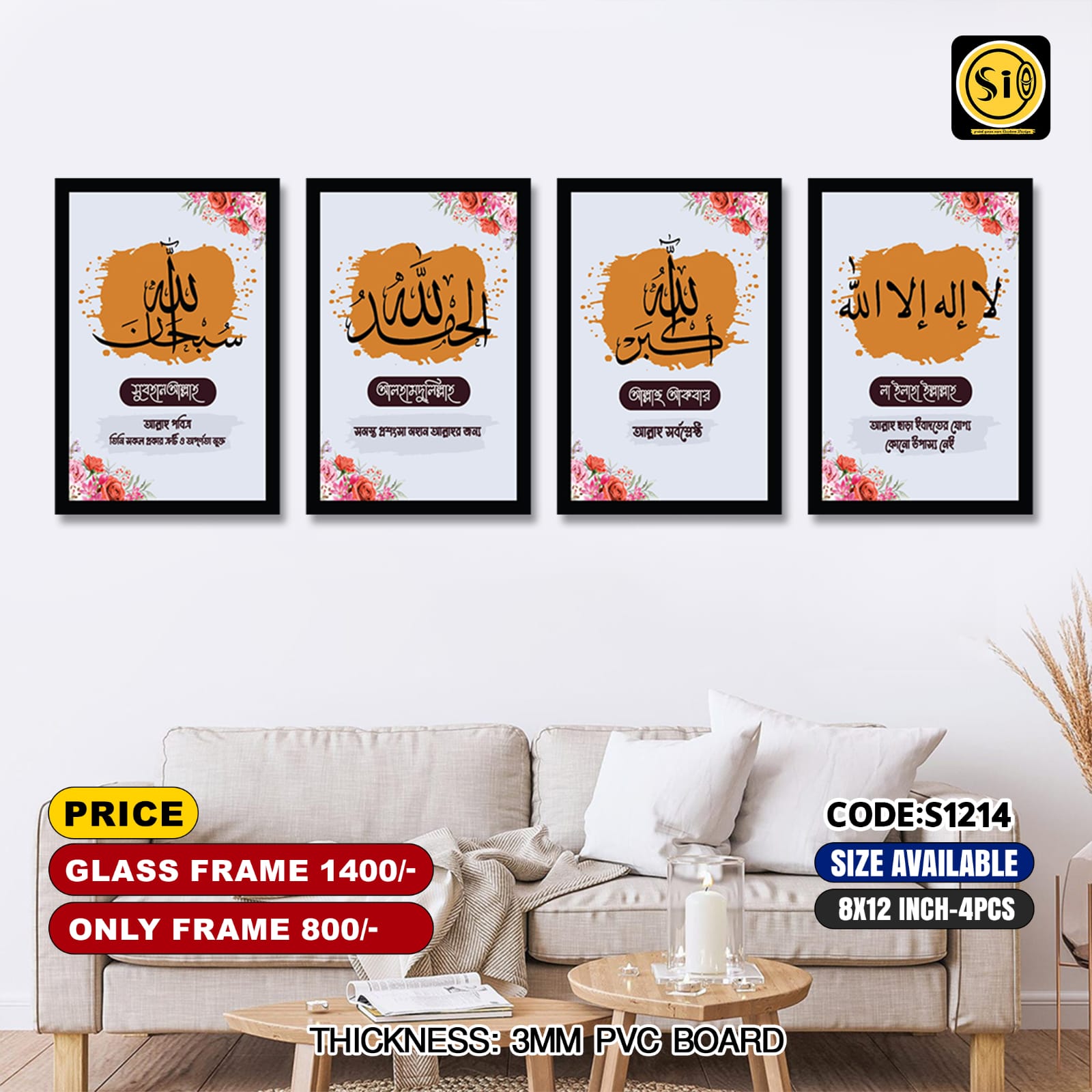 Frame + Wallboard Combo, Frame 8"*12", Islamic All Size Combo